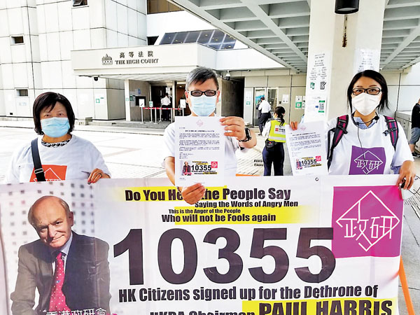 "喷鼻港政研会"还将以"do you hear the people say? paul harris must step down!"为题的公开信交给大年夜状师公会。