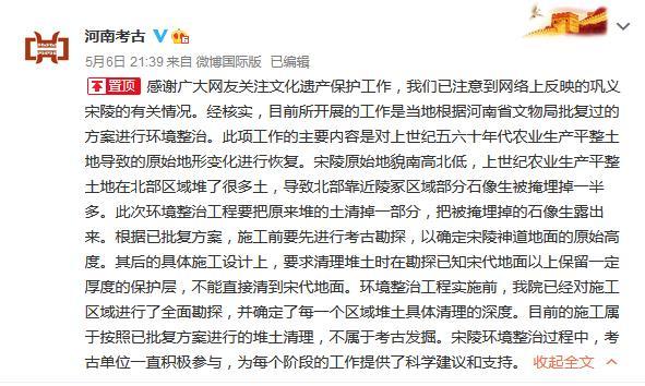 中新网5月7日电 近日河南省文物考古钻研院6日经由过程官方微博发文回应称