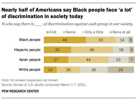 非洲裔群体在当今美国社会面临“很多”轻蔑。这一数字高于针对其他少数族裔的同样不雅点所占比例。