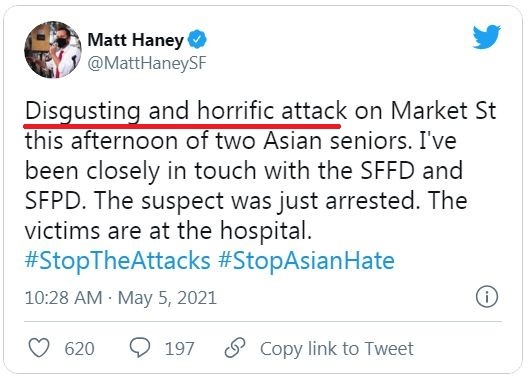 发生在旧金山的一路最新“仇亚”流血事故受到美国各大年夜媒体的集中关注。