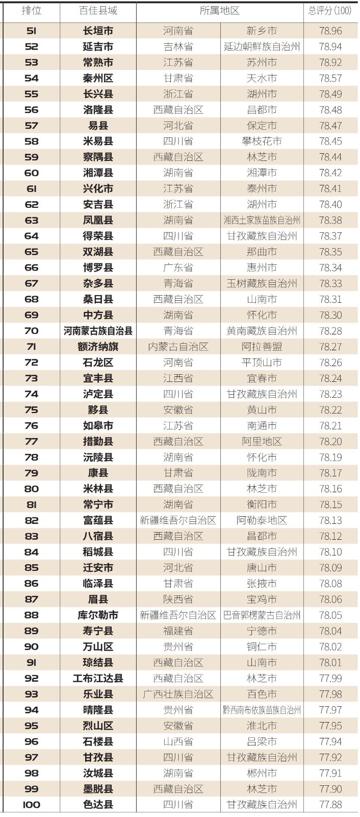 中西部地区县域在榜单中所占比例更大年夜在西部地区上榜的县域中