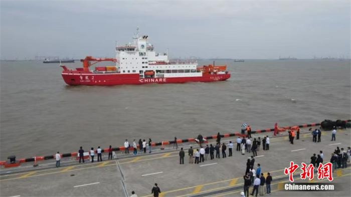 “雪龙2”号极地科学考察破冰船返回上海海内基地码头。