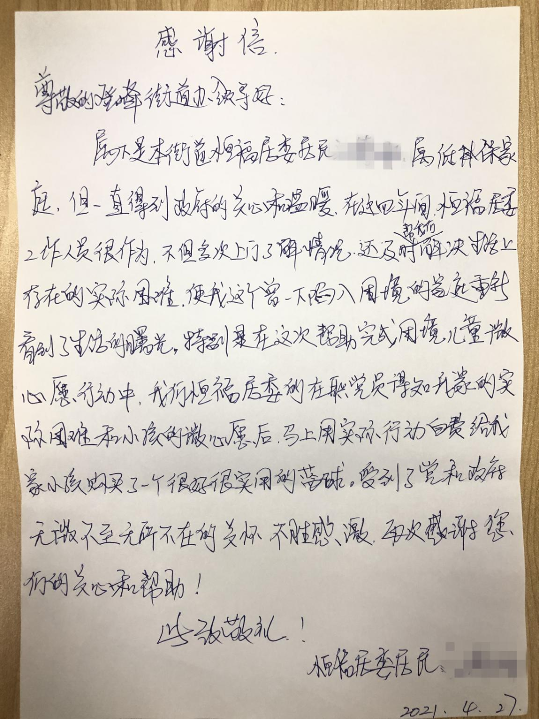 小杰家长写来的谢谢信