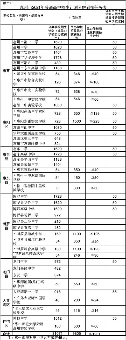 惠州将继承实施优质通俗高中黉舍招生名额按比例合理分配到区域内初中黉舍(含夷易近办)