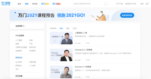 在线教导平台万门大年夜学覆盖it谋略机、职场技能、人工智能等多个领域的课程。