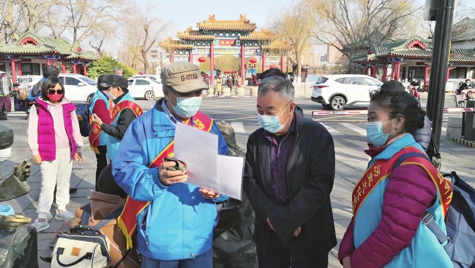 志愿者们在大明湖南门导赏。