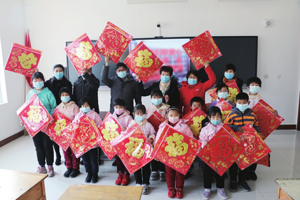 对留守困境儿童送上新年礼物。