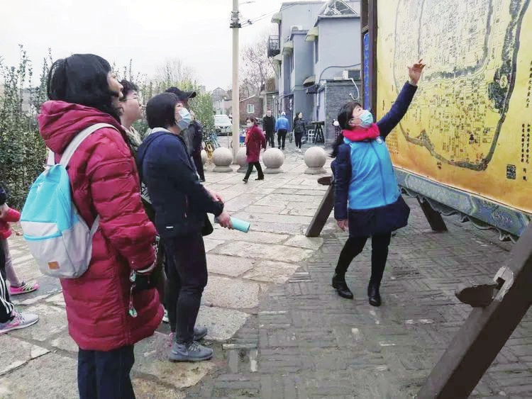 春节假期期间,“蓝马甲”志愿者在大明湖南门讲解“明湖八景”之一“丹坊耀日”牌坊的富丽壮观;在“棋局”铜塑边讲解当年曲水亭棋社的故事;在百花洲流杯池畔讲解比东晋大书法家王羲之“兰亭雅集”更早的济南“曲水流觞”的历史记载;在“百年赵树堂”讲述精美的砖雕照壁“慎独”体现的严谨家风;在清代光绪年间古城地图前讲述“三山不显,四门不对”的古城历史文化……一批批游客入迷地听着济南悠久的历史文化故事,深感震撼。
