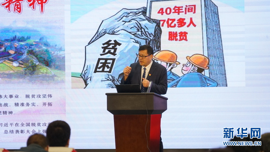新疆师范大年夜学马克思主义学院副教授吴常柏作宣讲新华网李梦婷摄