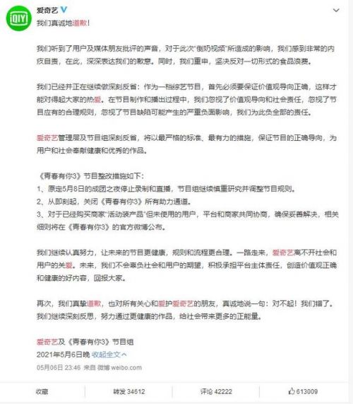 深深表达我们的歉意重申武断否决统统形式的食物挥霍原定5月8日的成团之夜竣事录制和直播