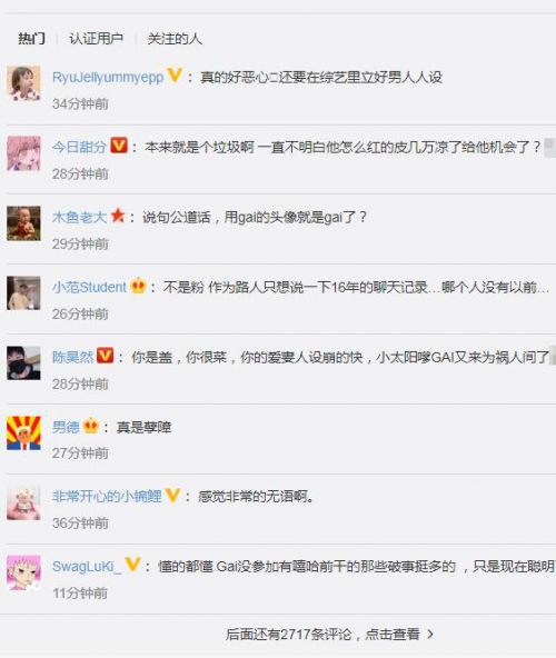 一段疑似说唱歌手gai与女粉丝的谈天录屏曝光。视频显示2016年5月gai主动给女粉丝发私信说道:“过来。