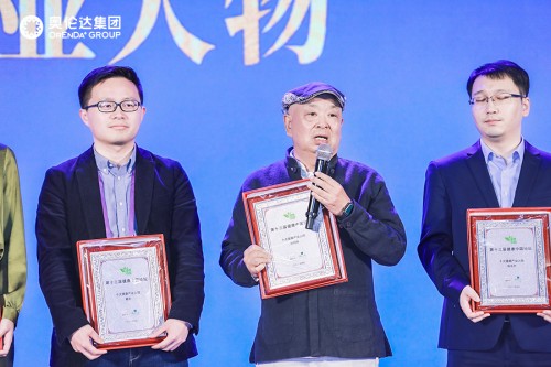 奥伦达集团董事局主席兼总裁刘朝阳(中)上台领奖并颁发讲话