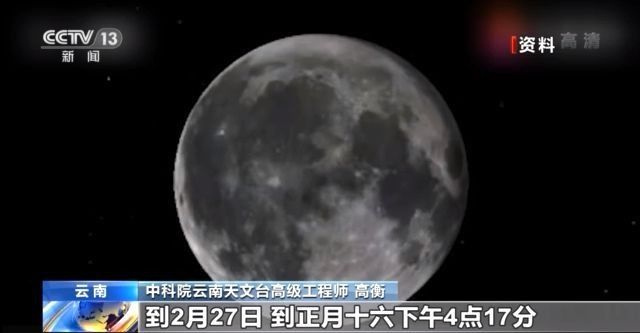 中科院云南天文台高级工程师 高衡:到2月27日,正月十六下午4点17分是最圆的时候,当然我们肉眼看不出来,隔一天两天看不出来。