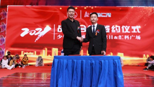 少年强中国强品牌项目办公室王继俊主任与汇科广场董事长何斌峰签署片子计谋相助