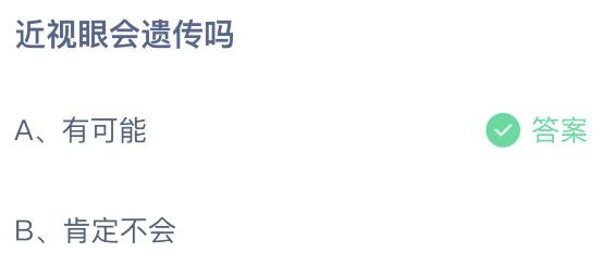 近视眼会遗传吗?这是支付宝蚂蚁庄园5月8号今日庄园小讲堂的问题。