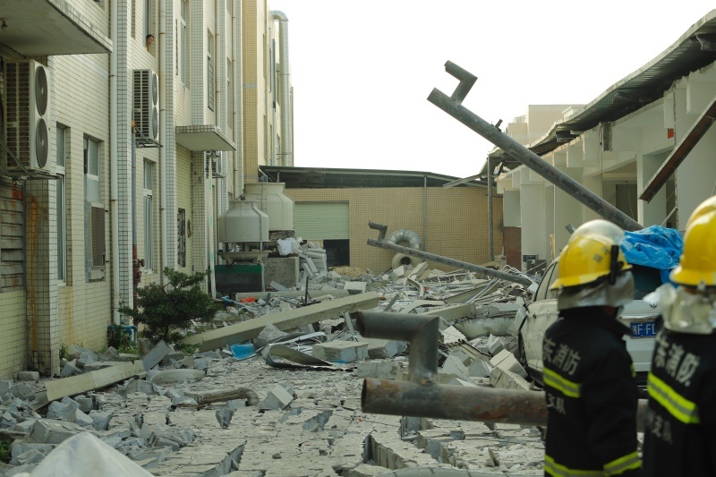 “现场是一栋两层的建筑发生坍塌,坍塌后,两层的建筑仅有一层楼的高度了。”据消防员介绍,坍塌的建筑为铁皮、彩钢板搭建的建筑。当时一名群众被困在了彩钢板与房檐之间,腿部被夹住;另一名群众则是困在楼板下面。好在,经初步确认,两人均没有生命危险。