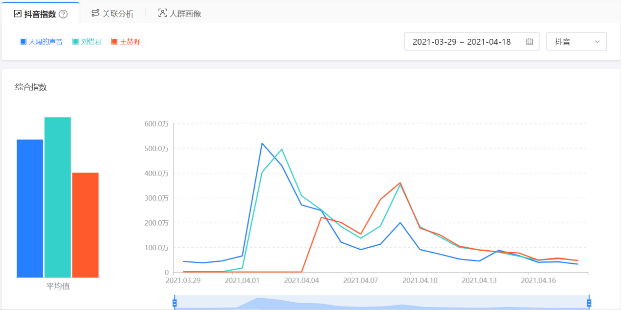 并且相较于抖音综合声量