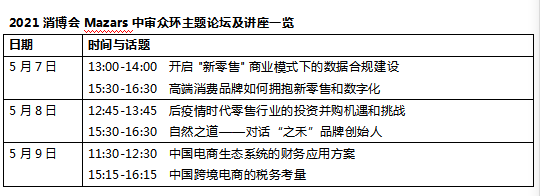 本届消博会上,mazars中审众环展台将带来6场主题论坛与演讲。采纳远程连线和现场直播形式机动展开,话题涉及高端破费品、跨境电商、新零售、数字化等热点话题,为线上线下的不雅众逐一解读零售行业的机遇与寻衅。