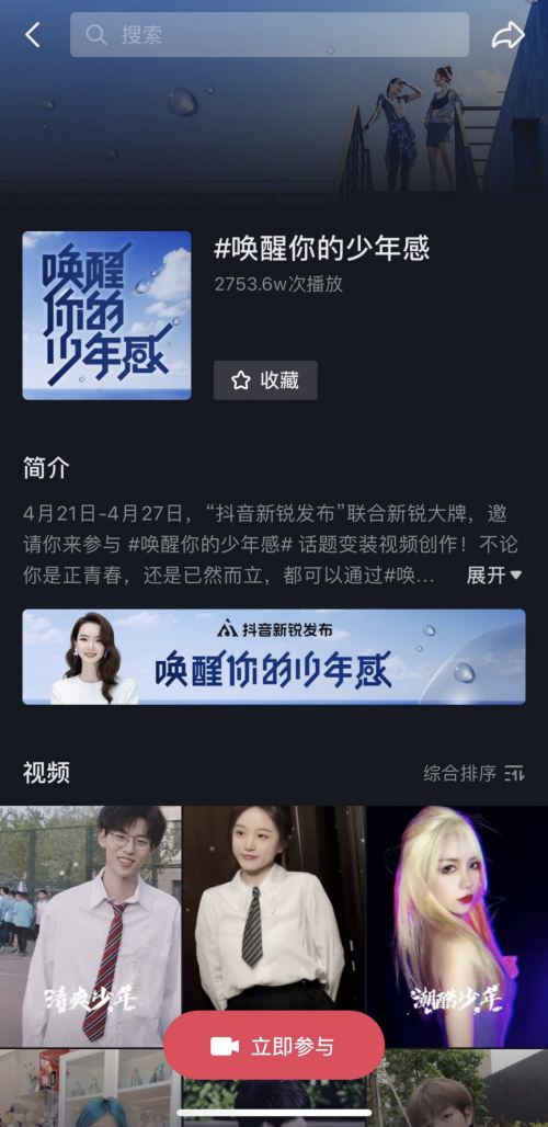活动时代在抖音站内开启了 #唤醒你的少年感# 话题寻衅赛。