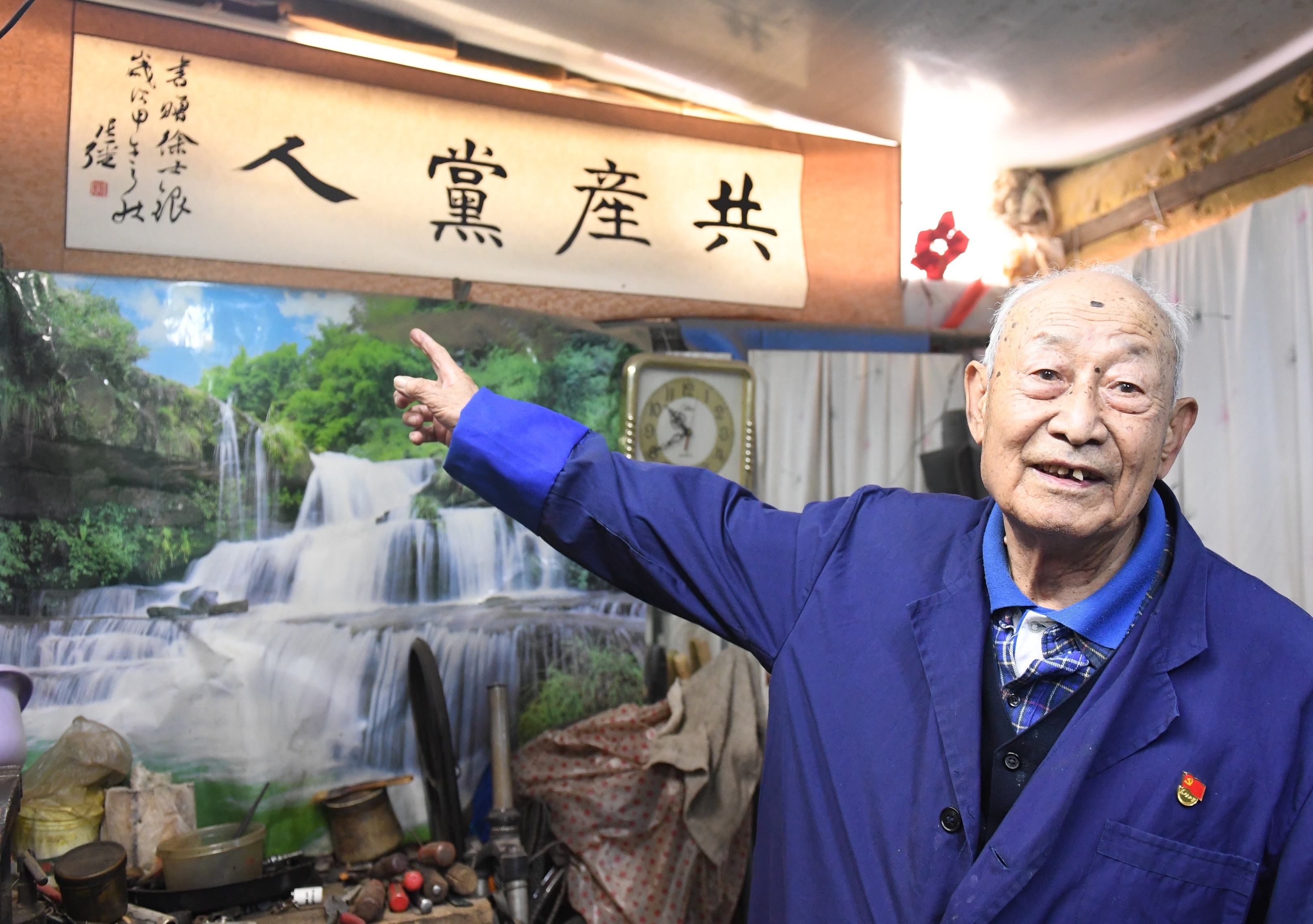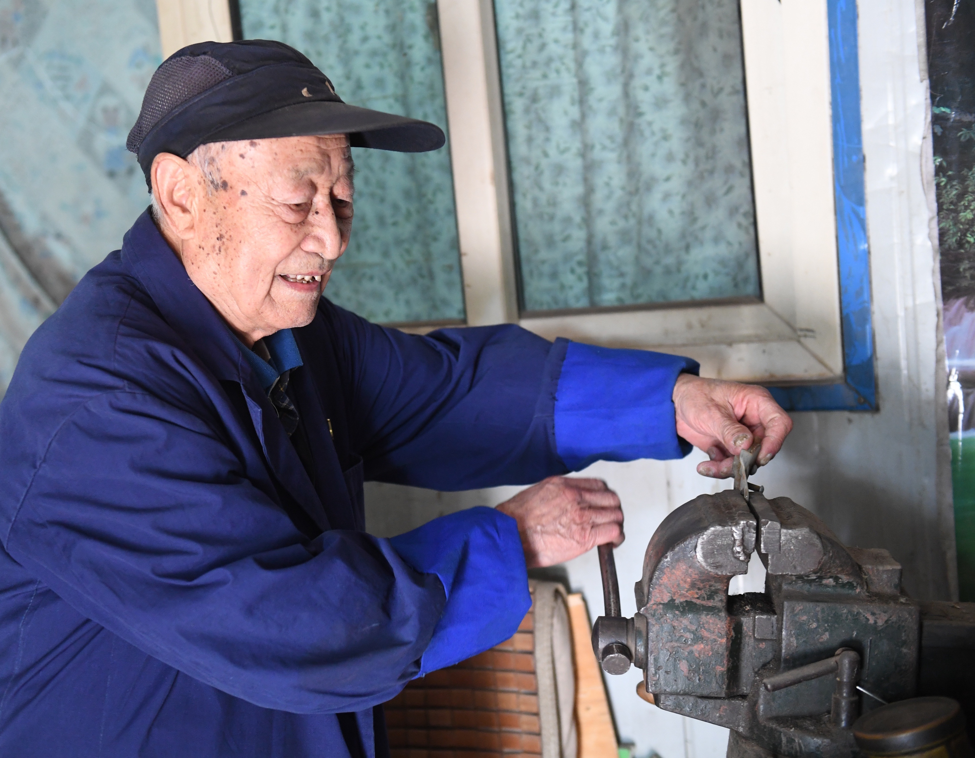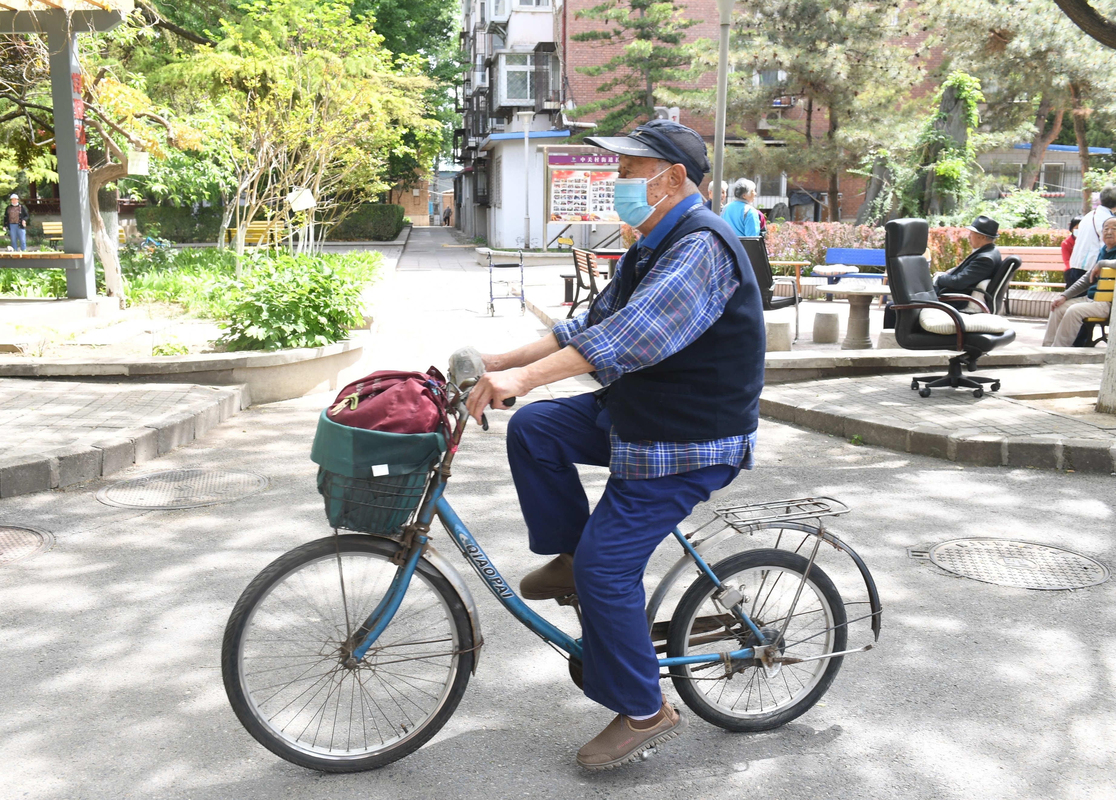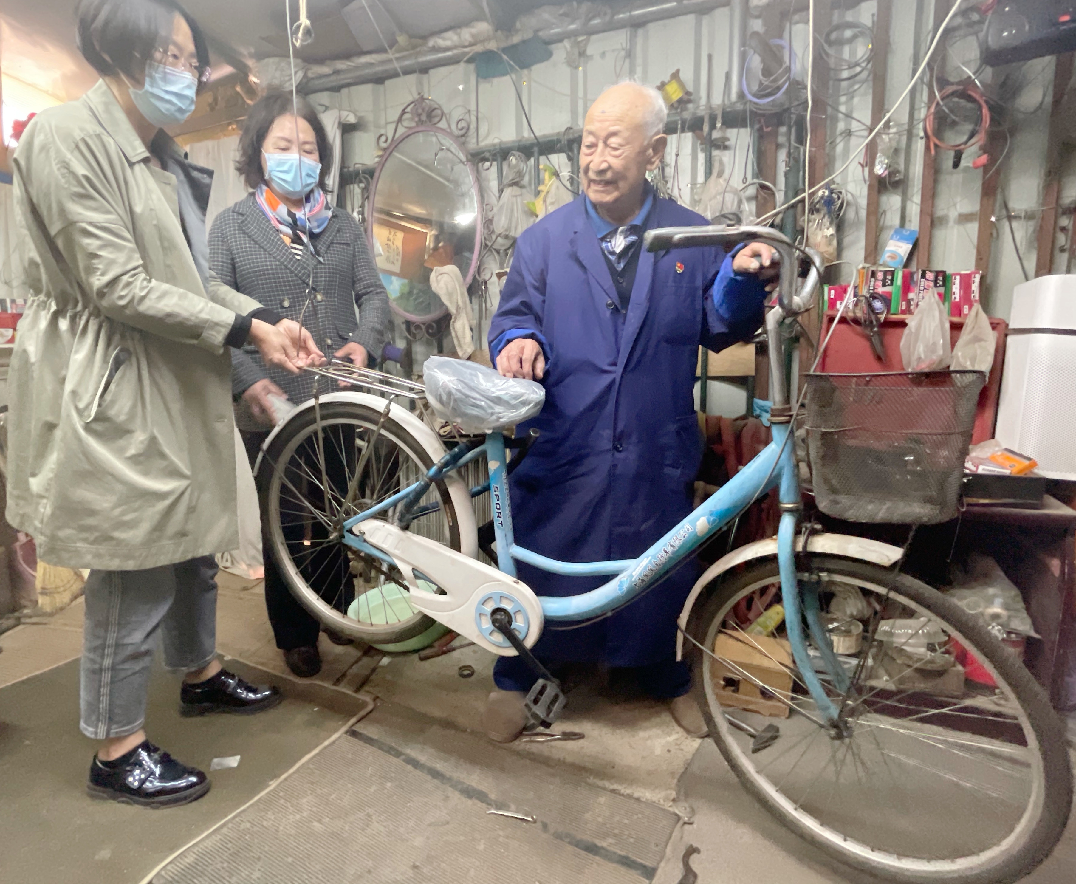 骑自行车来到空间社区大年夜院的修车铺上班。在这简陋的修车铺里。