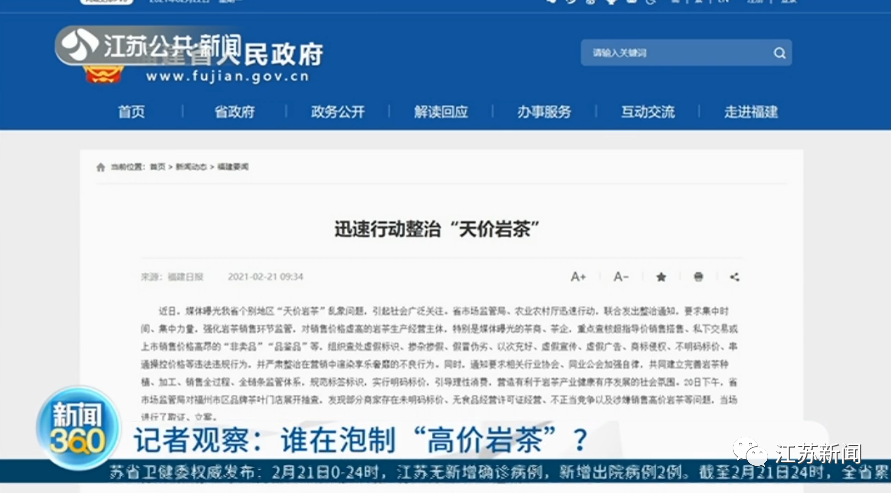 同时,通知要求相关行业协会、同业公会加强自律。2月20号,福建省市场监管局抽查了福州市区的品牌茶叶门店,发现部分商家存在未明码标价、无食品经营许可证、不正当竞争以及涉嫌销售高价岩茶等问题,并当场取证、立案。