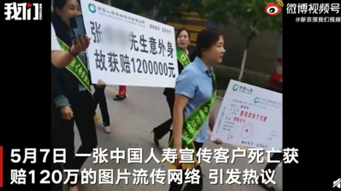 一张中国人寿鼓吹“客户意外身亡获赔120万”的截图在网上热传