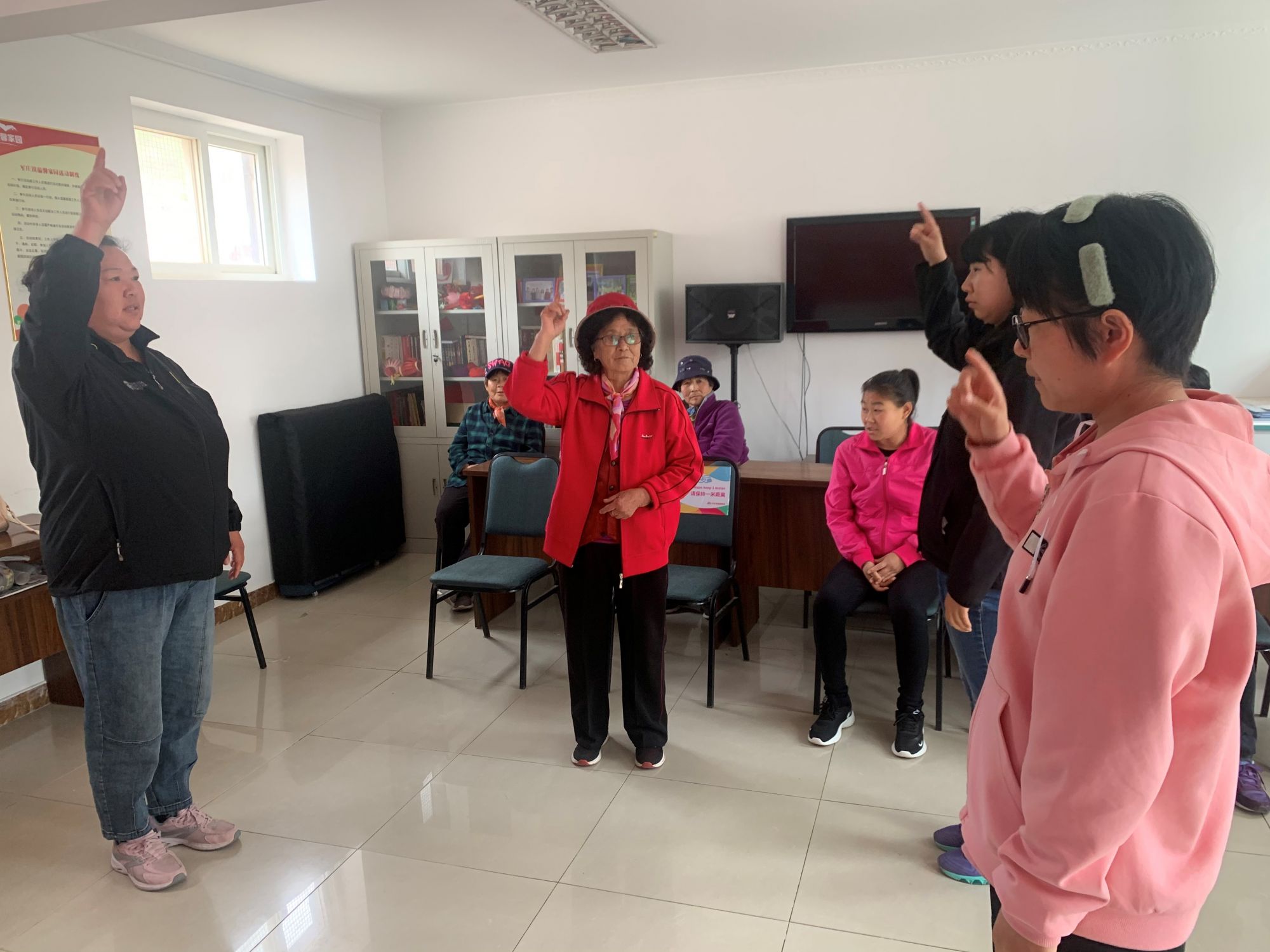 在军庄镇温馨家园开展为期10天的“感德的心”手语跳舞练习课。