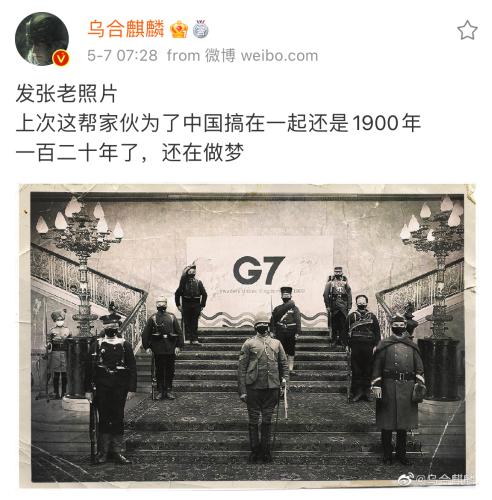 "the last time when these guys colluded to suppress china was in 1900; 120 years have passed, they are still dreaming," patriotic chinese cartoonist wuheqilin posted on social media, alongside his new satire illustration on friday, comparing the meddling of the g7 (or group of seven) in china's internal affairs to the notorious invasion of china by the eight-nation alliance troops in 1900.