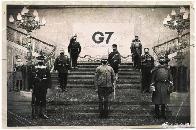是作者根据5月4日七国集团代表在英国伦敦会晤时拍摄的集体照绘制的。