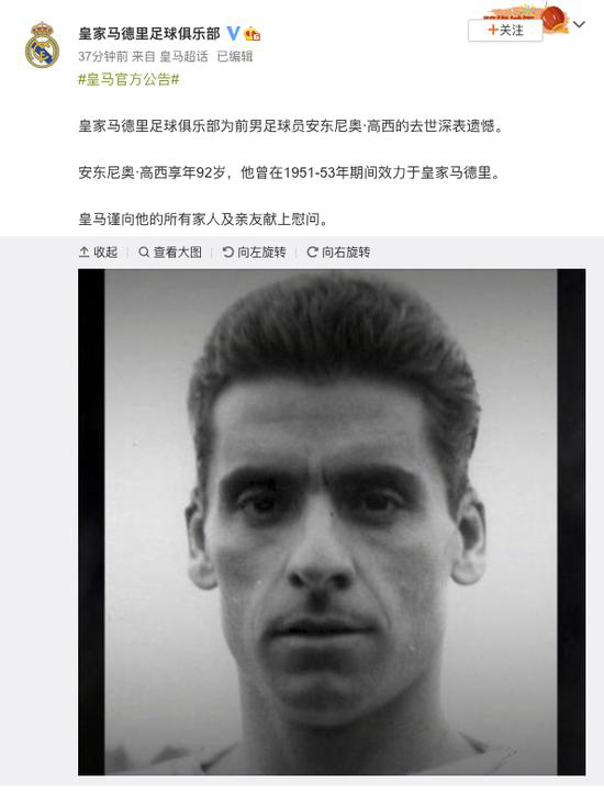 @皇家马德里足球俱乐部 微博宣布看护布告称。