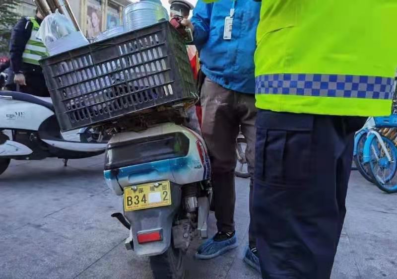 见圳客户端·深圳新闻网2021年2月23日讯(深圳特区报首席记者 解树森 文/图)为进一步加强深圳电动车交通安全综合整治,有效预防道路交通安全事故,深圳交警于2月23日开展电动自行车涉备案号牌违法交通安全整治行动。