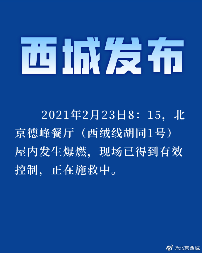 http://news.sznews.com/pic/2021-02/23/6c75afd8-899b-4456-a440-4dd52edc453c.jpghttp://www.sznews.com/news/content/2021-02/23/content_23991416.htmhttp://www.sznews.com/news/content/mb/2021-02/23/content_23991416.htm中国新闻网据北京市西城区人民政府新闻办公室官方微博消息,2月23日8:15,北京德峰餐厅(西绒线胡同1号)屋内发生爆燃,现场已得到有效控制,正在施救中。图片来源:北京市西城区人民政府新闻办公室官方微博1/enpproperty-->