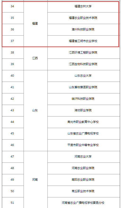 村庄子振兴人才培养优质校和农业科研院所拟推介名单(福建)