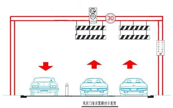 本次施工的主要内容为限高、限载和限速交通标志牌以及警示限高架的安装。
