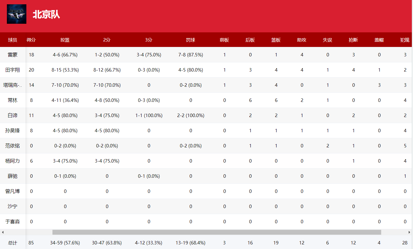 北京队本场总篮板输了10个