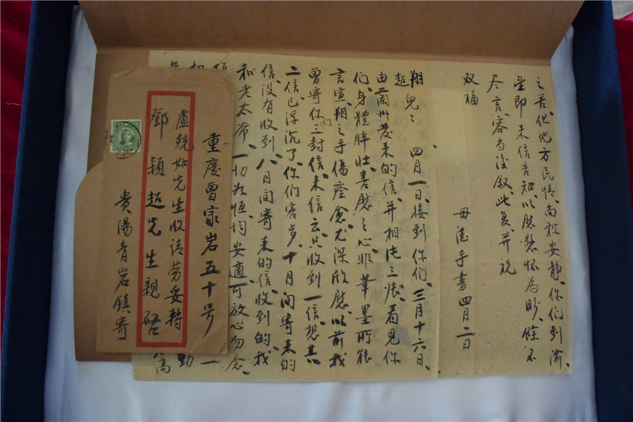 这是在天津周恩来邓颖超纪念馆拍摄的杨振德写给女儿邓颖超和东床周恩来的家信(3月31日摄)。 新华社记者 周润健 摄