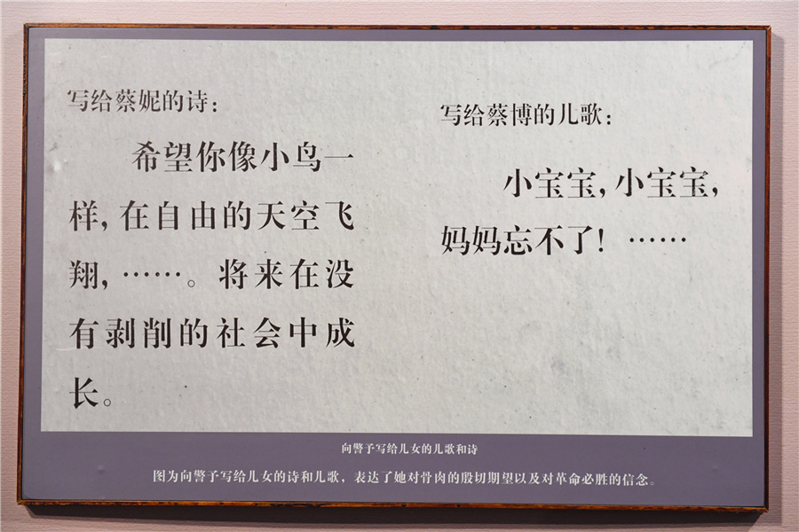 这是湖南省溆浦县向警予同道纪念馆展示的向警予写给儿女的诗和童谣(3月6日摄)。 新华社记者 陈泽国 摄