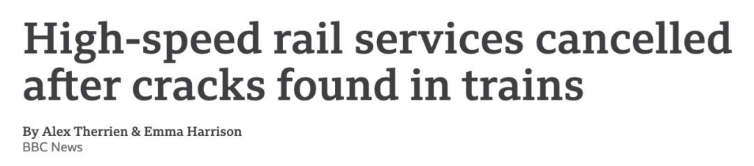 大年夜西部铁路公司就在例行掩护中发明该型号列车的吊挂系统呈现细微裂纹。