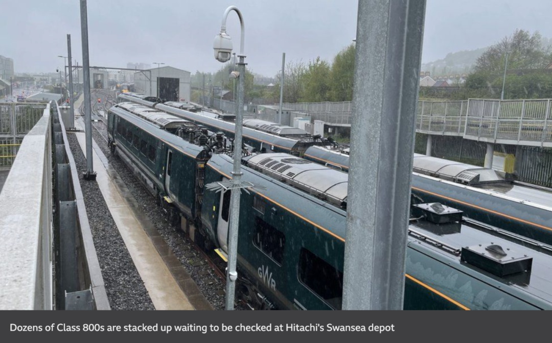在当地光阴周六早上的例行反省中发明部分日立800型列车的底盘存在问题。克里斯称。