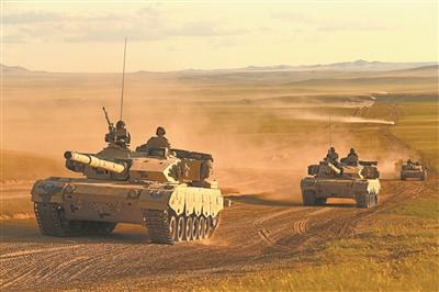 蓝方坦克分队正在进行疆场灵便郭 力摄