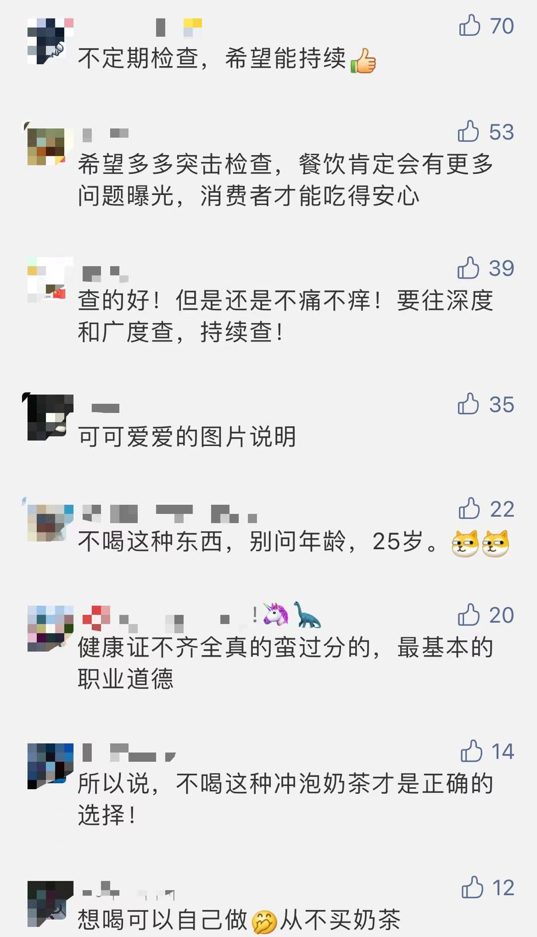 从检查结果来看,奶茶们有做的不错的方面,但每家也都有待改进的方面,人员的健康证、后厨或仓库杂物的混放、食品原料放置不规范等。