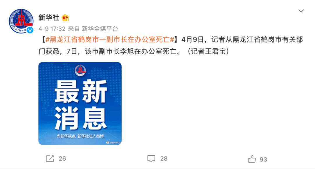 黑龙江省鹤岗市副市长李旭在其办公室逝世亡。经警方查询造访。