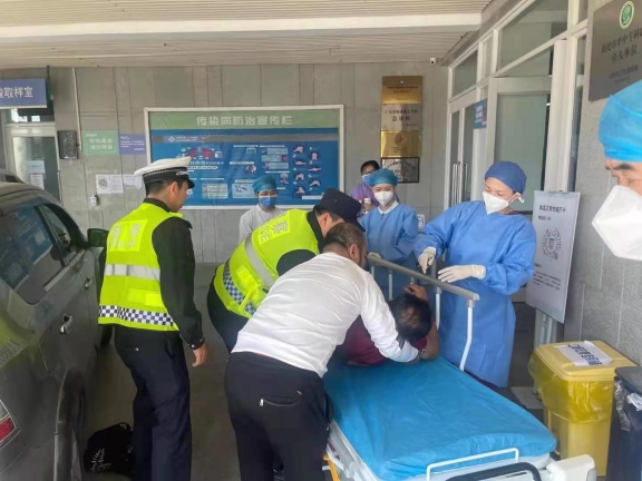 汕尾交警市区一大队值班中队在接受汕尾市公安局指挥中心的指令后,立即启用优先通行方案,立刻启动警车赶到交接处接引该车,并安排各路口执勤人员做好保畅措施,警车一路打开警灯拉响警笛进行前方开道,于12时44分将病人送达医院急诊室抢救,整个护送过程只用了9分钟,成功为患者抢得宝贵的救治时间。