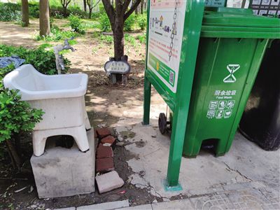 丰台区政馨园三区一处垃圾桶站配备了洗手池新京报记者 黄哲程 摄