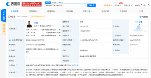 如海南阿里巴巴影业有限公司、海南火羽白影视文化传媒有限公司。