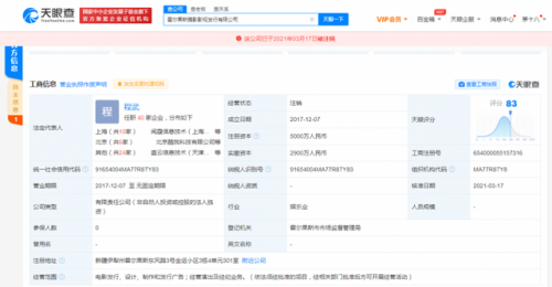 浩繁影视公司也在陆续注销、撤离。天眼查app显示。