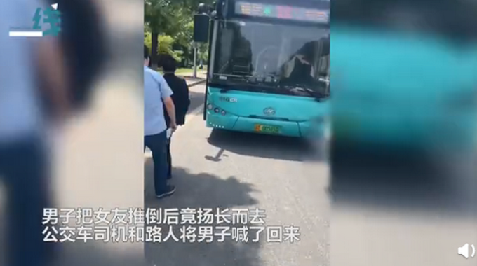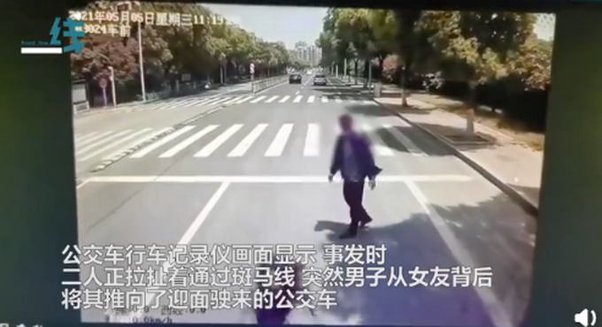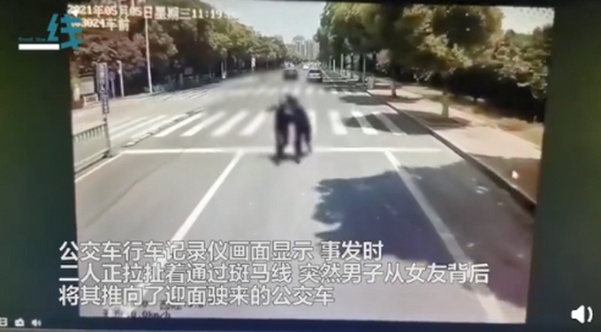一把将女友推向了扑面驶来的公交车亏得公交司机着末一刻将车刹停