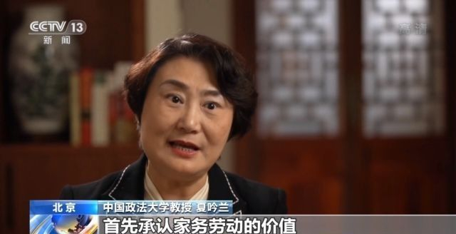 中国政法大学教授 夏吟兰:我们现在的这个法律首先承认家务劳动的价值,不管你是全职太太完全在家从事家务劳动,还是你是职业妇女既从事家务劳动也从事社会工作。那么只要你确实是从事家务劳动较多,你就可以要求对你的家务劳动在离婚的时候予以补偿 。