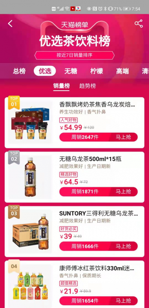 喷鼻飘飘烤奶茶就斩获了天猫优选茶饮料榜第一名。