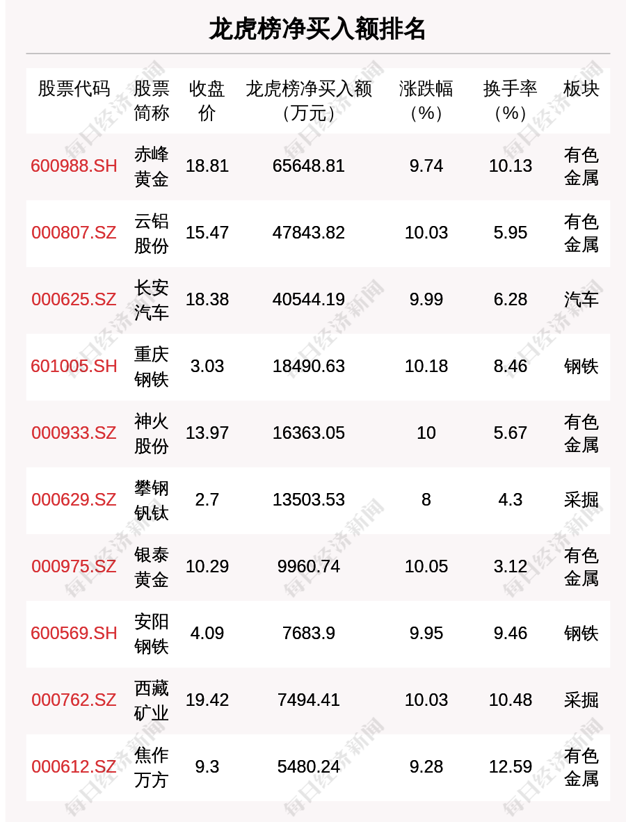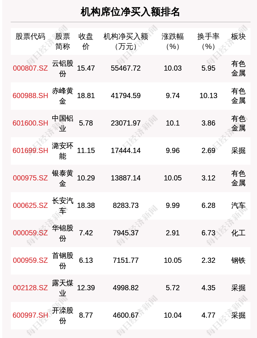净买入额前三的是云铝股份、赤峰黄金、中国铝业
